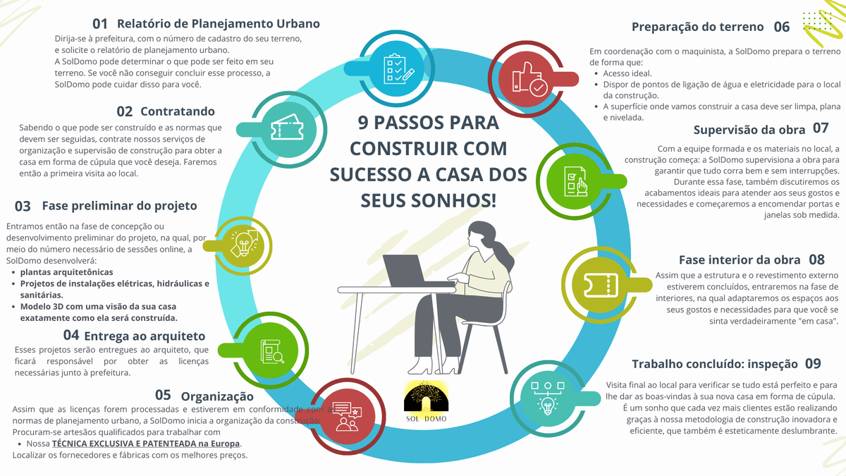 A construção da villa com cúpula monolítica SolDomo é realizada por meio de uma técnica construtiva patenteada, reconhecida por sua eficiência, rapidez e desempenho estrutural.